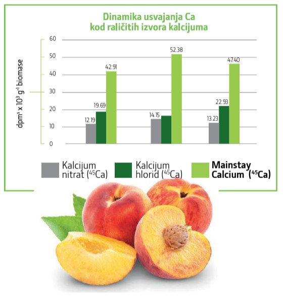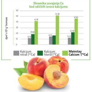 Mainstay Ca predstavlja jedinstven oblik visokokoncentrovanog kalcijuma na tržištu dobijen Nano Shield tehnologijom sa dodatkom transportera za bolje, brže usvajanje i ugradnju kalcijuma u tkivo biljke. Kalcijum kao esencijalni hranljivi element se veoma teško usvaja i transportuje kroz biljku. Čak do 80% usvojenog kalcijuma odlazi u list biljke, dok se manji deo transportuje i usvaja od strane ploda. Nedostupnost kalcijuma u plodu dovodi do neujednačenosti plodova kao i do smanjenja kvaliteta samog ploda (npr. gorke pege)