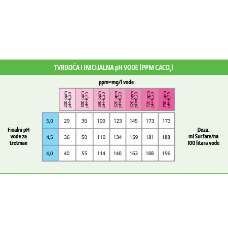 • Zahvaljujući visokoj koncentraciji, količina koja se koristi u odnosu na količinu vode je veoma mala.