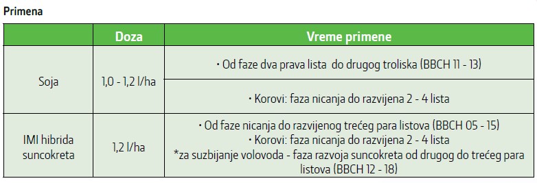 • Kompatibilan u usevu soje sa sredstvima za zaštitu bilja na bazi bentazona.